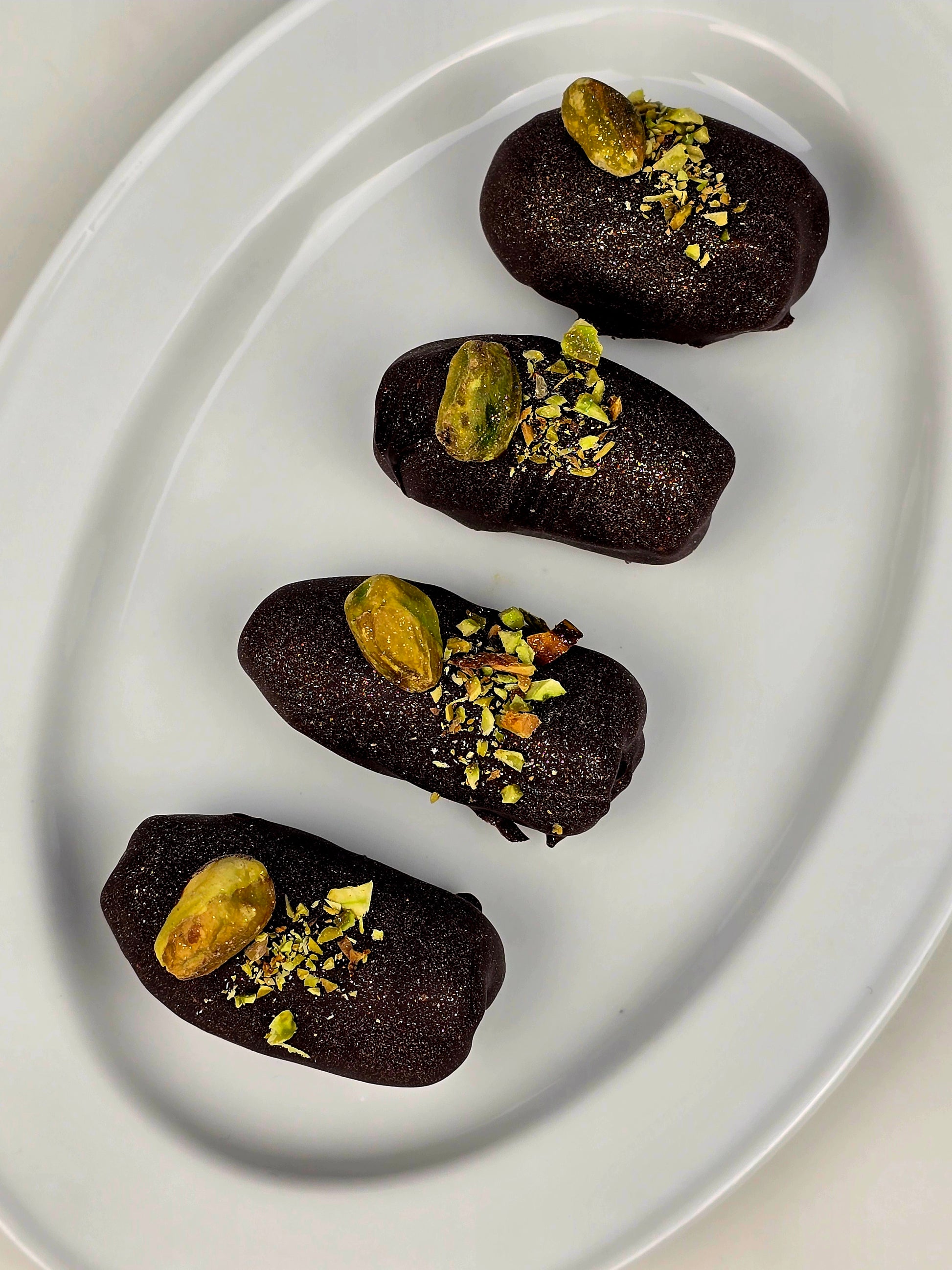 Verwöhnen Sie Ihre Gaumen mit unseren köstlichen Datteln in Schokolade mit Pistazien. Genießen Sie die perfekte Kombination aus saftigen Datteln, knackigen Pistazien und zarter Schokolade. Perfekt als süßer Snack oder als besonderes Geschenk für Ihre Liebsten.