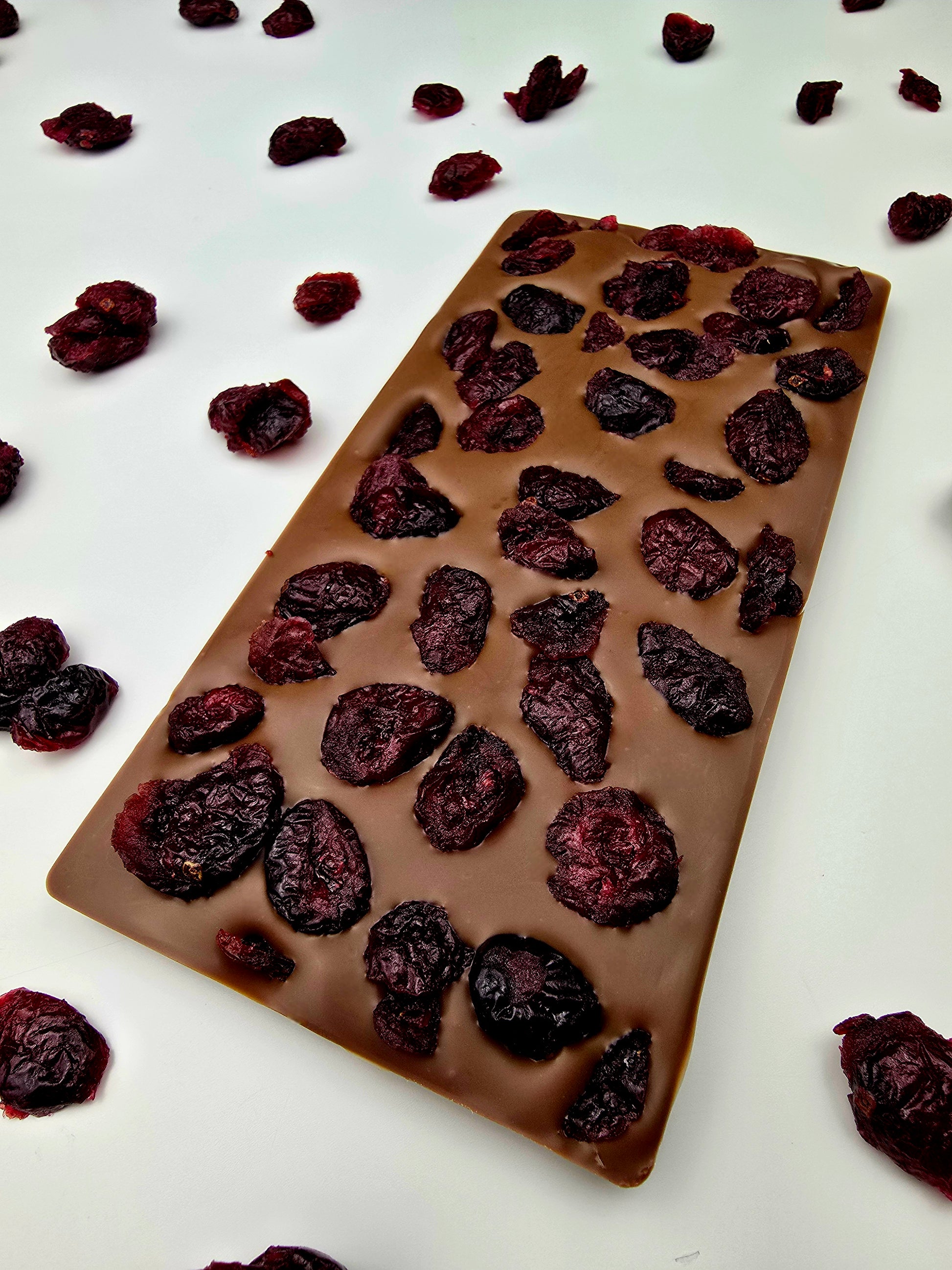 Genieße die fruchtige Frische der Cranberrys zusammen mit der Schokolade – ein perfektes Geschmackserlebnis!